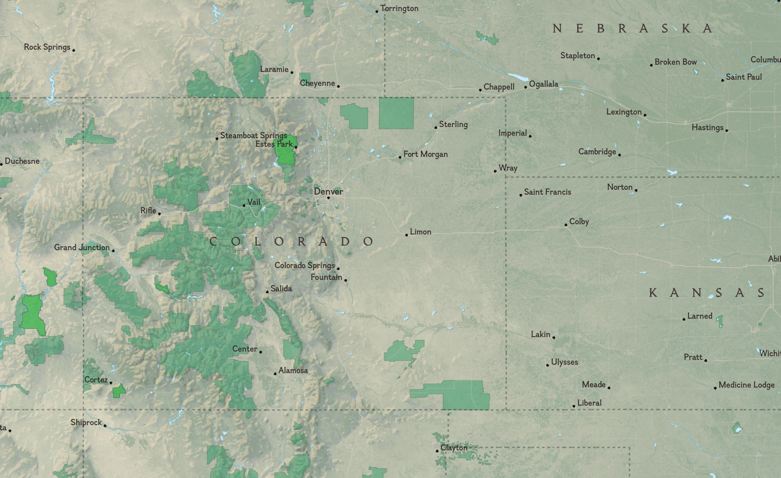 The goal was to show every park in the United States, and make the distinction between National & local parks. To ensure the map didn’t look like a jumbled mess of green polygons, we knew early on we’d need the parks to come slowly depending on how far the user was zoomed in.